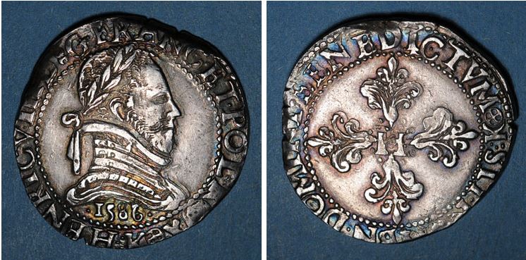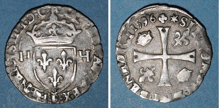 FRANCE-HenriIV-Douzain(ar)(1596)(24mm-2.3g) SCOTLAND-JamesVI(1558-1603)-Shilling(ar)(1582)(33mm-7.8g)