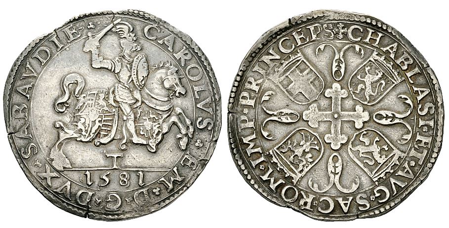 SAVOIE(Duché)-Ch.-EmmanII-Tallero(ar)(1581)(43mm-28g) ENGLAND-ElisabethI(1558-1603)-Pound(or)(35mm-11g)