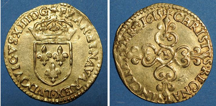ITALIE- Florence(Ferdin.II de Méd.)- Piastre(ar)(32g)(1634)    FRANCE-LouisXIII(1610-43)- Ecu d'or(or)(1615)(26mm-3.37g)