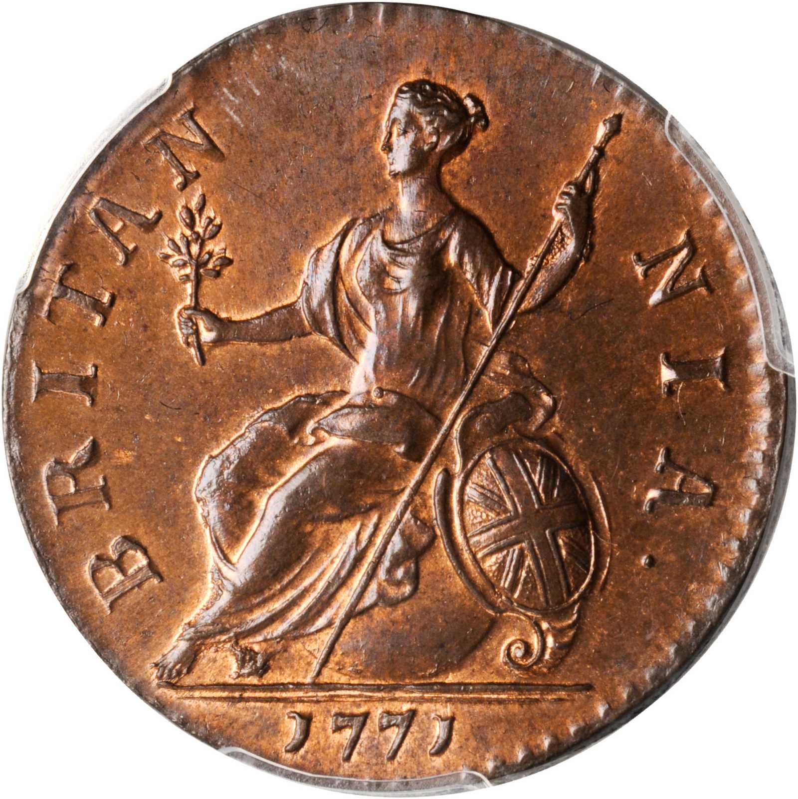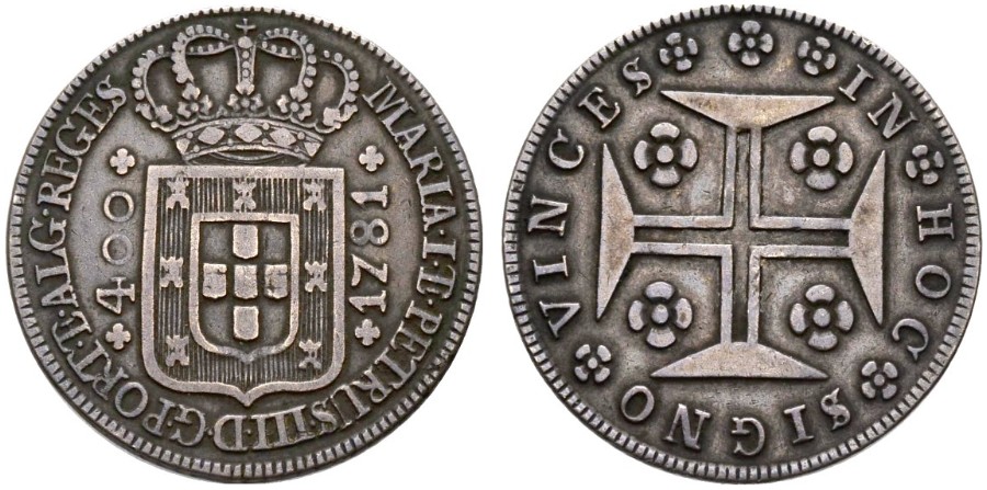 | ENGLAND-GeorgeIII-Penny(cu)(1771)(28mm) | PORTUGAL - Maria/PedroIII-400-reis(ar)(1781)(35mm-14.3g) |