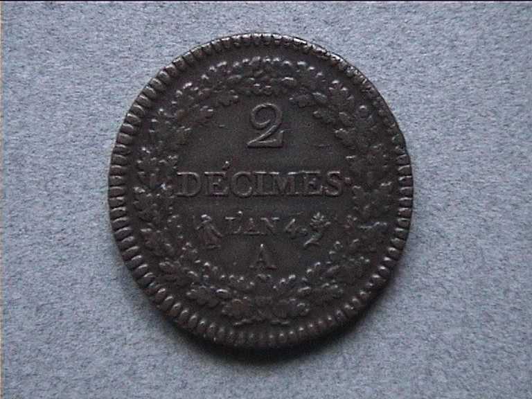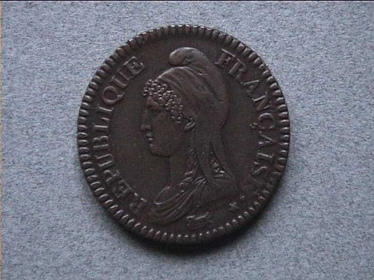 | FRANCE(Directoire)2-décimes(br)(1795)(33mm) F | FRANCE(Constitution)-Ecu-6Livres(ar)(1792)(30mm-29g) |