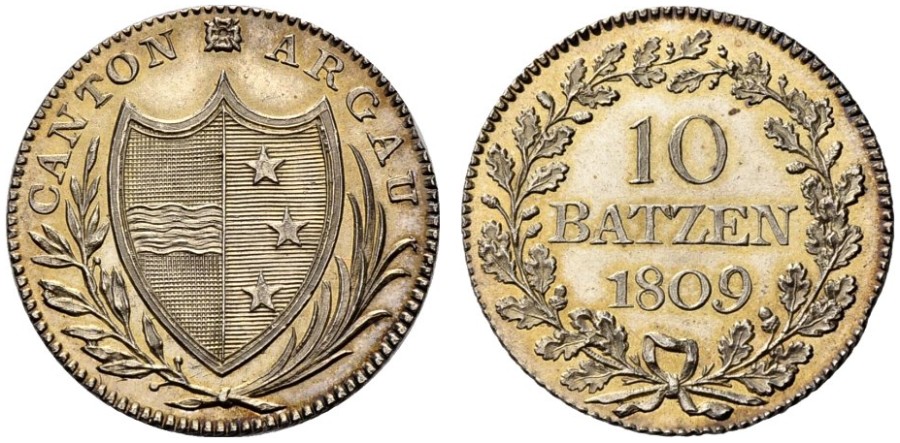 | SUEDE- Karl XIII(1809-1818) - Skilling(cu) (1816)(33mm-31g) | SUISSE-Aargau-10-batzen(ar)(1809)(28mm-7.4g) |