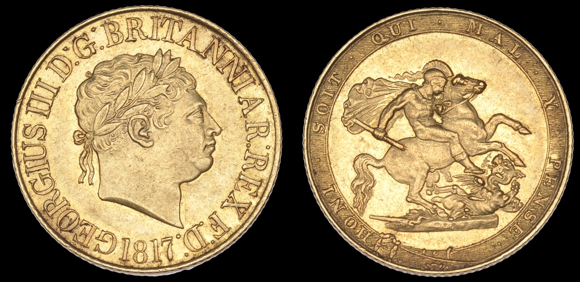 | ANGLETERRE - George III(1760-1820) - Souverain(or) (1817) | GRECE(Roy.)- Capodistrias(1827-1831) - 10 lepta(cu) (1831)(30mm) |