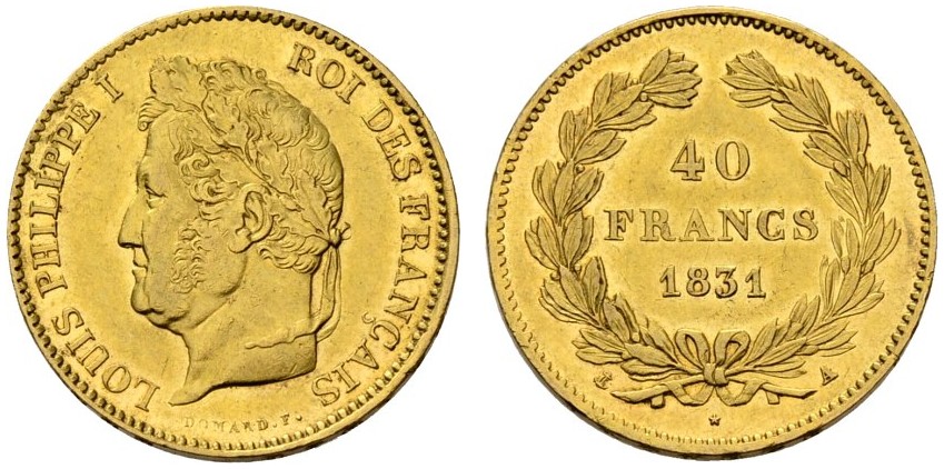 | FRANCE-LouisPhilippe-40francs(or)(1831)(--mm- --g) | USA-1 Cent(cu)(1819)(--mm- --g) |
