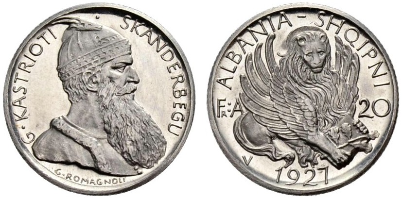 | ALBANIE - 20-franga() (1927) | IRAN -Moh.Reza(1941-1979) - Pahlavi(or) (1943) |