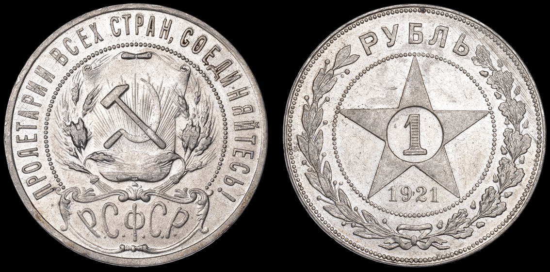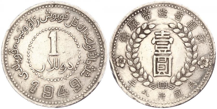 | RUSSIE(SOV.) - Rouble (ar) (1921) | CHINE -Sin Kiang(ChineseTurkestan) - Sar(Dollar)(ar) (1949)(36mm) |