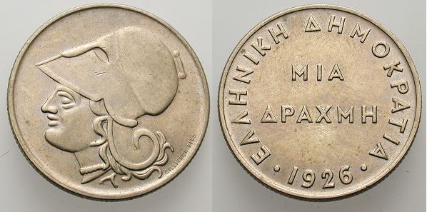 | GRECE - 1-drachme (1926) | PALESTINE - 20-mils(cu) (1941) |