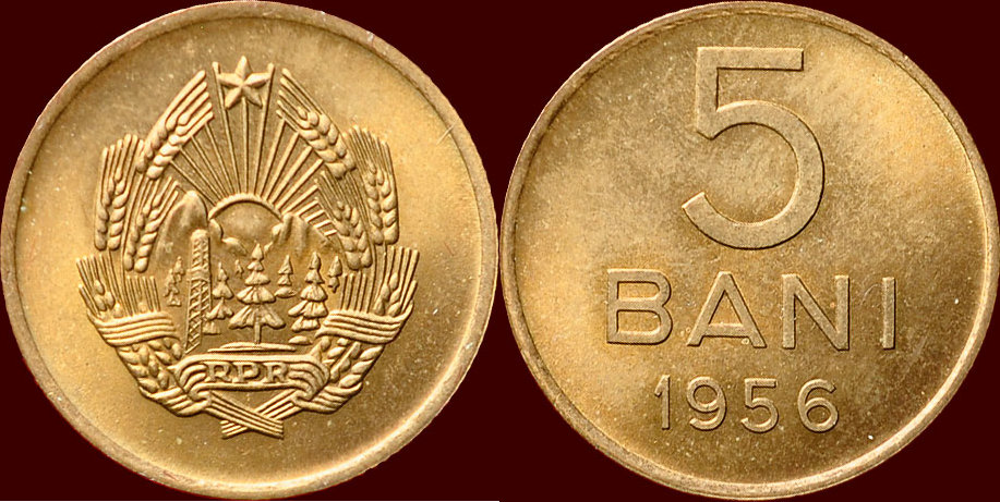 FRANCE-Vè Rép-5-centimes(al-br)(1972)           ROUMANIE-5-bani-(cu,ni,zn)(1956)