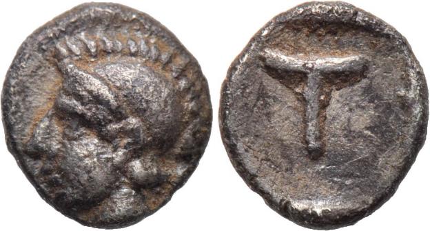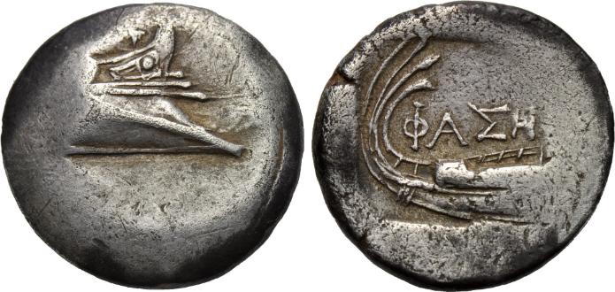 | A. M .- LYCIE -Phasélis-Tétrobole(ar)(c.411av)(10mm-2.5g) - Proue / Poupe | SICILE -Syracuse-Tétras(br)(c.425av)(11mm-2g) |