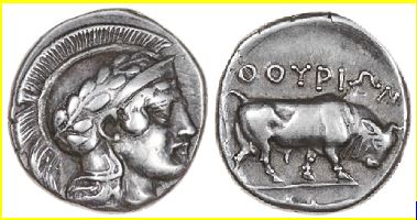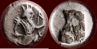 | ITALIE -Campanie(Thurioi)-Statère(didr.)(ar)(c.440av)(21mm-7.8g) | PERSES-ACHEMEN.-Artaxerxès-1.4-sicle(ar)(c.440av)(9mm-1.3g) |