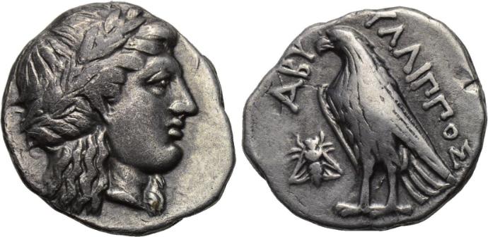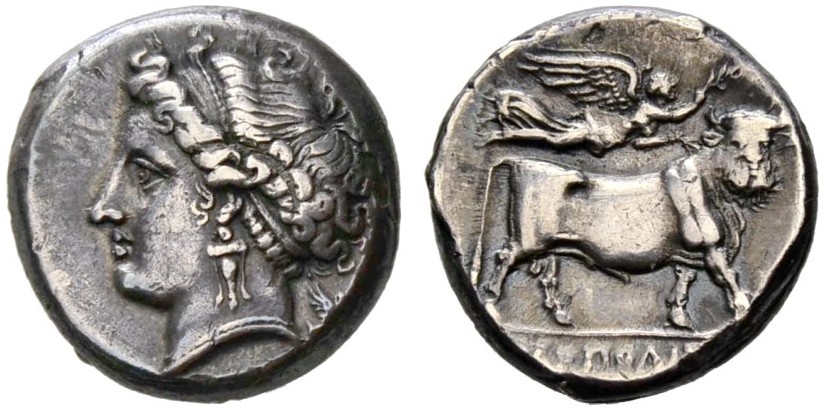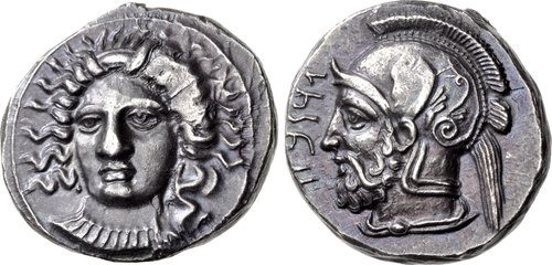 | THRACE-Mesembria-Diobol(ar)(399-350av)(11mm-1.2g) Casque/Roue | SICILE-Syracuse-Tétradrachme(ar)(405-367av)(25mm-17g) |