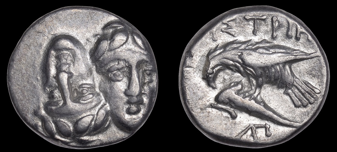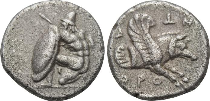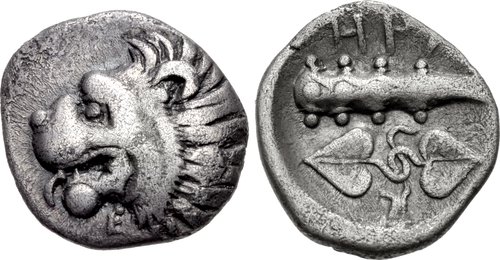 | MYSIE-Klysthène(/Orontes)-Tétrobol(ar)(c.355av)(15mm-2.7g) | TROADE-Abydos-Hémidrachme(ar)(c.380av)(15mm-2.4g) |
