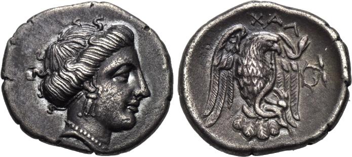 | PERSE-Vadradate-Tétradrachme(ar)(c.280av)(28mm-15.9g) | ITALIE(Lucanie)-Velia--Statère(Didrachme)(ar)(c.270av)(21mm-7.3g) |