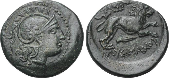 | GRECE-(Eubée)-Chalkis-Drachme(ar)(290-273av)(18mm-3.5g) | THRACE-Lysimaque(306-281)Bronze(br)(c.290av)(21mm-5.8g) |