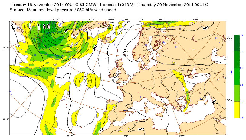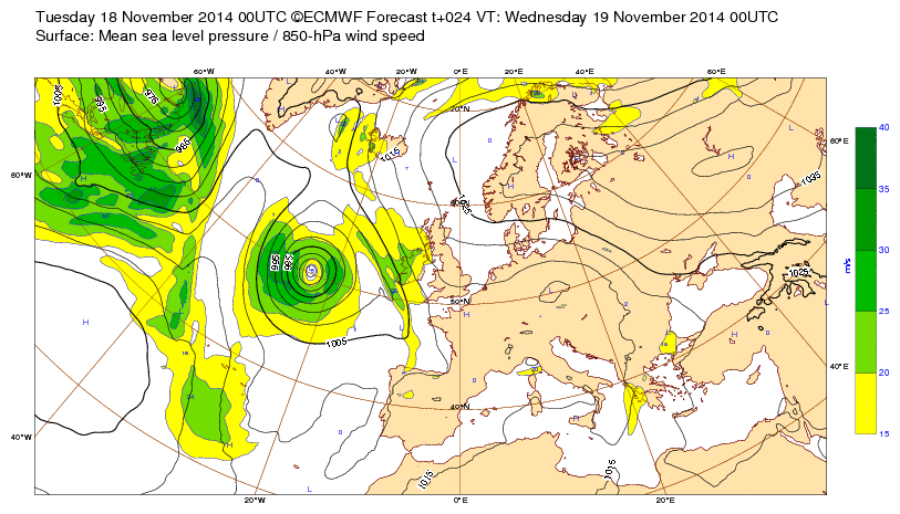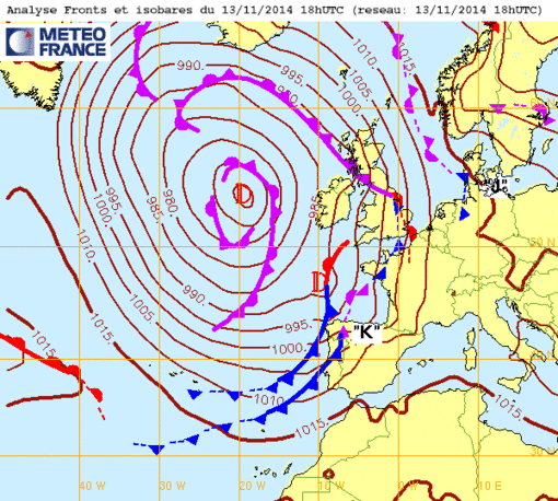 Ve 14 nov 14 à 11h00 : ... Beau cyclone plus ou moins stable habituel en novembre qui prodigue pluie, coups de vent et douceur sur l'ouest de l'Europe...