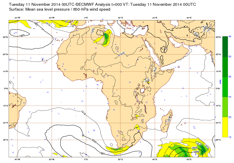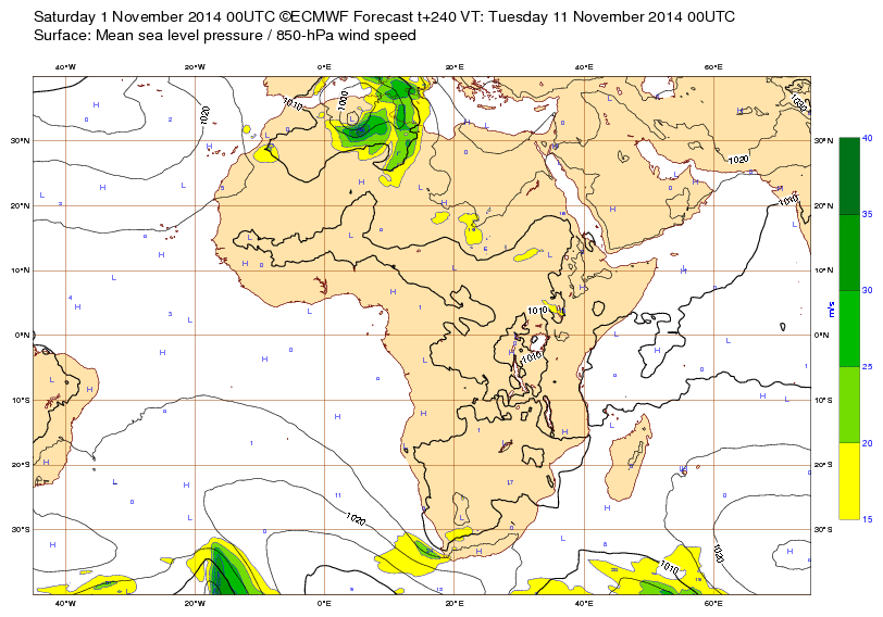 Sa 1er nov 14 à 11h00 : ... Tempête d'automne sur le Sahara ? (situation prévue pour le 11 nov.)(J-10) (situation observée ci-dessous)