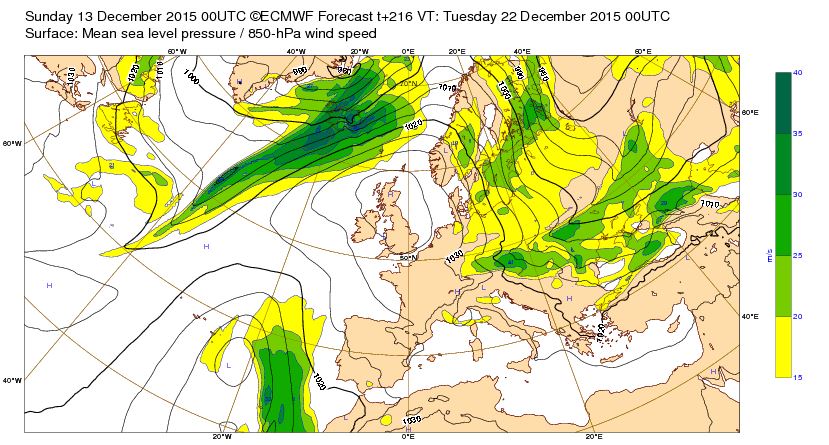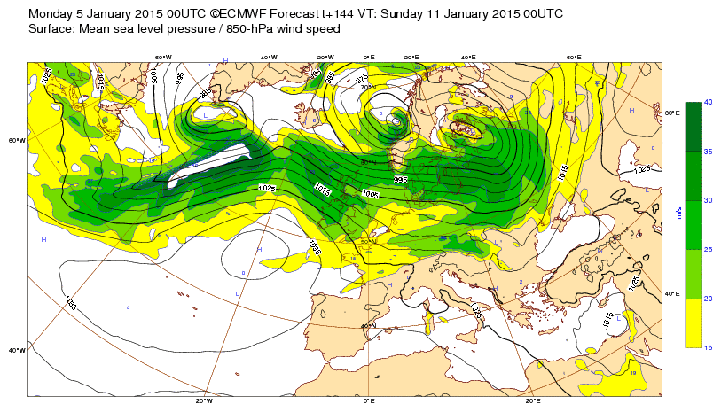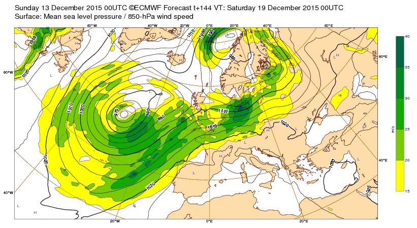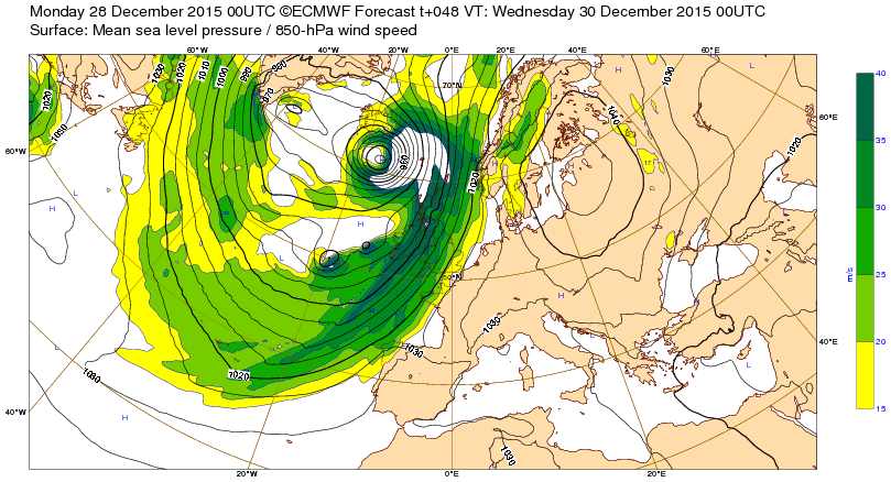 Lu 27 déc 15 à 12h00 : Une dépression très creuse (933mb) prévue entre l'Islande et l'Ecosse le Me 30/12:15 à 00h