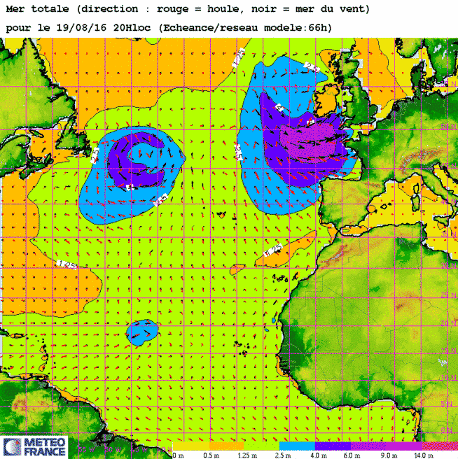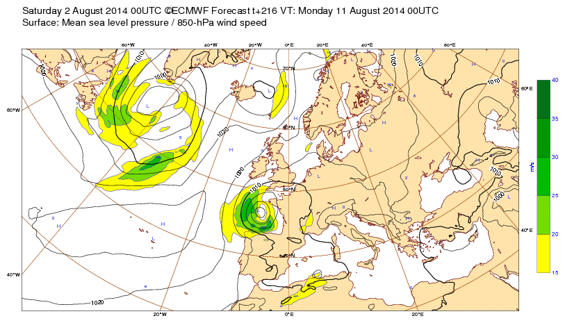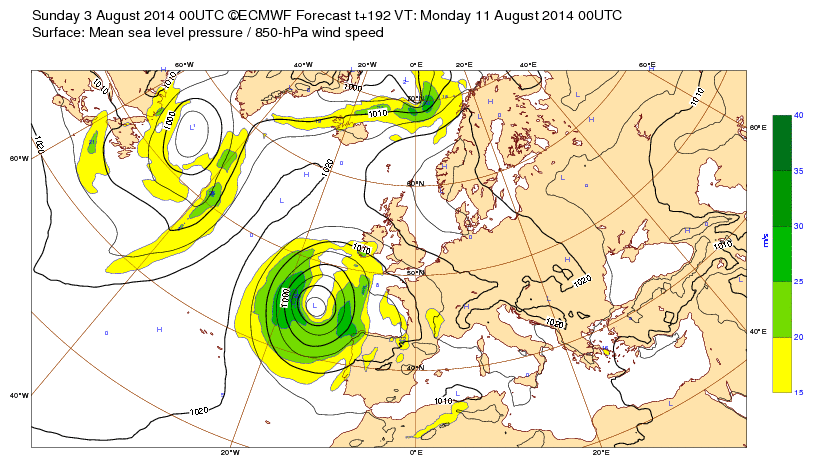 Sa 2 août 14 à 12h00 : ...un coup de vent (tempête locale?) d'été prévu Golfe de Gascogne pour le lu11 ! (soit à J-9, donc à confirmer...)