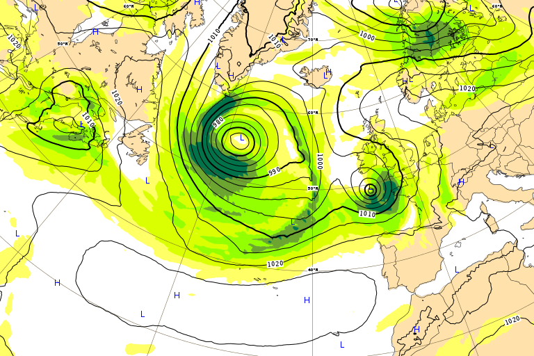 Ve 13 oct 17 à 11h00 : ...(J-4) Tient bien sur l'Irlande mais se comble (970 à 985mb)