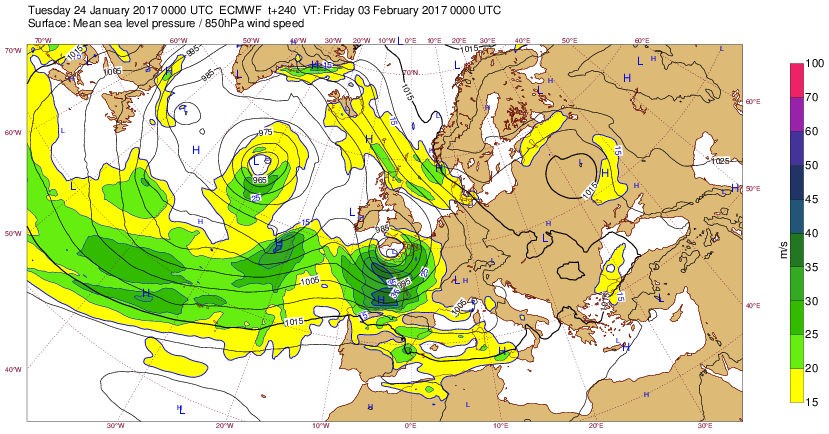 Ma 24 jan 17 à 11h00 : Nouvelle tempéte possible en vue sur la Manche et la moitié N mais à 10j d'ici (ve3 fév)... Attendons de voir ! j-10 :