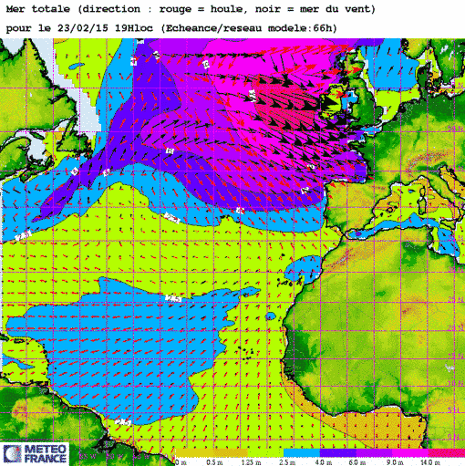 Sa 21 fév 15 à 11h00 : ...Une cellule de Mer Enorme(>14m) devrait atteindre les côtes W de l'Irlande en fin de journée lu23 !