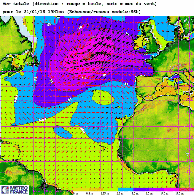 Ve 29 jan 16 à 11h00 : Encore un oeil de mer énorme(>14m) qui nous regarde au centre de l'Atlantique. Mais il est peu probable qu'il atteigne les côtes...